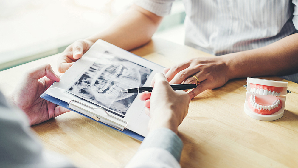 レントゲン撮影、CT撮影、検査器具(ミラー、探針等)を使った検査、スタディモデルの採取(お口の型どり)を行います。
